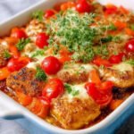 Das Aroma von frisch gebratenem Hühnchen, kombiniert mit würzigen Kräutern und dem süßen Duft saftiger Tomaten, zieht jeden in der Nähe magisch an. Ein Bissen dieses köstlichen Abendessens zum Abnehmen wird Ihre Geschmacksknospen zum Tanzen bringen, während das knusprige Gemüse Ihnen ein zufriedenes Gefühl gibt.
