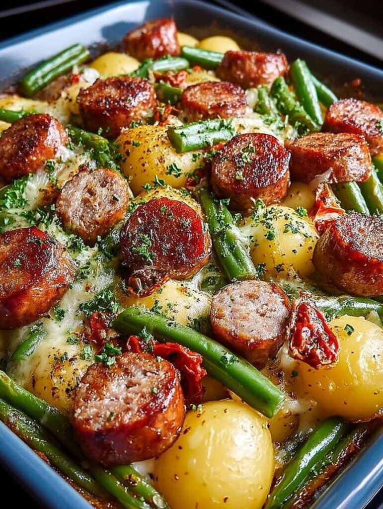 Köstlicher Wurst Bohnen Kartoffel Auflauf