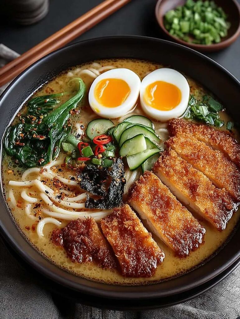 Eine dampfende Schüssel Miso-Ramen, die mit zartem Chicken Katsu belegt ist, entfaltet beim ersten Löffel einen herzhaften Umami-Geschmack, der alle Sinne belebt. Die Kombination aus der reichen Brühe, den knackigen …