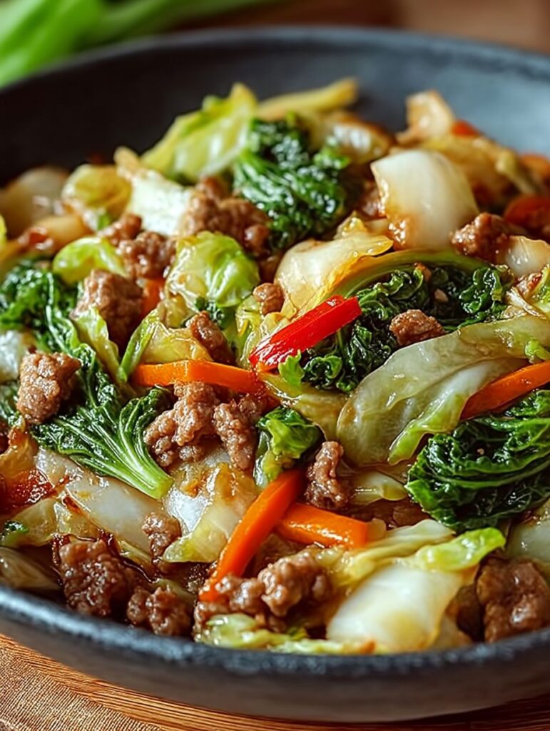 Würzige Chinakohl-Rinderhack-Pfanne In einer kleinen Küche, in der der Auflauf um die Ecke schielte und die Pfanne ein heimliches Leben führte, entstand ein Gericht, das die Geschmacksknospen zum Tanzen brachte. …