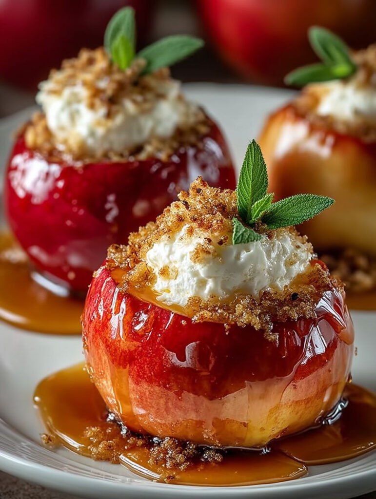 Stell dir vor, du beißt in einen warmen, saftigen Apfel, der mit einer cremigen Käsekuchenfüllung gefüllt ist und die Aromen von Zimt und Vanille entfaltet sich wie eine umarmende Decke …