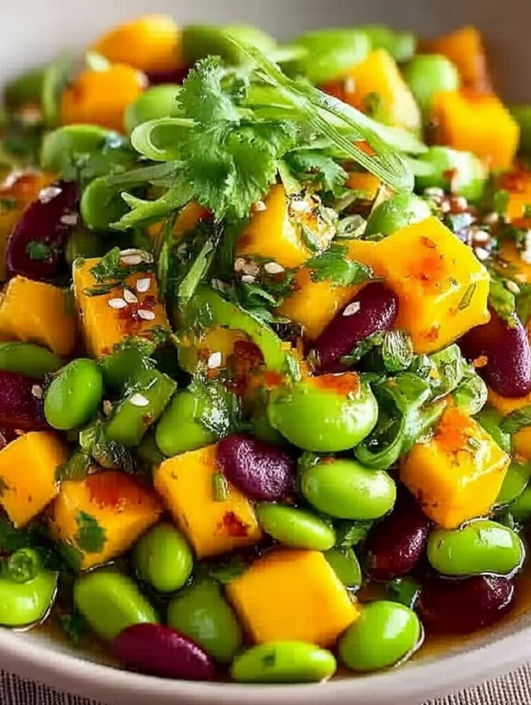 Die Kombination aus knackigen Edamame und süßen, saftigen Mangostücken bringt die Geschmacksknospen zum Tanzen, während der frische Limettensaft alles perfekt abrundet. Ein Hauch von Koriander sorgt für das i-Tüpfelchen und …