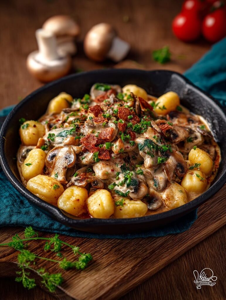 Die Aromen einer cremigen Pilzrahmsoße, durchzogen von der zarten Textur frisch zubereiteter Gnocchi, umspielen den Gaumen wie ein harmonisches Konzert. Stellen Sie sich vor, wie jeder Bissen die perfekte Balance …