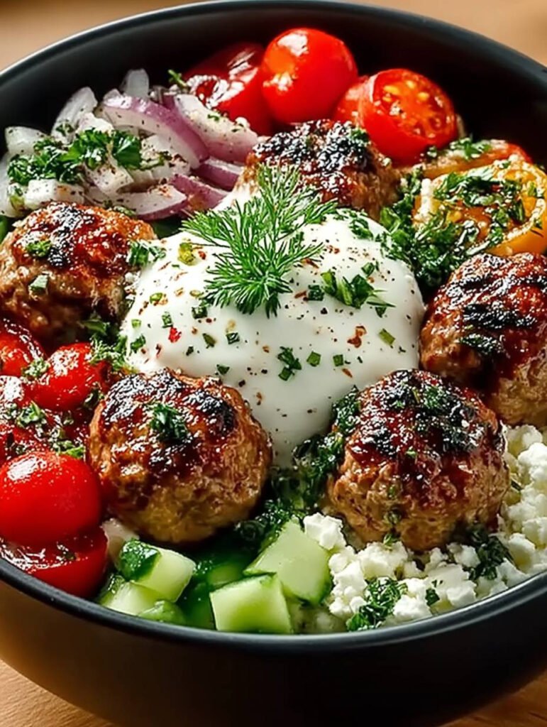 Die Aromen der Mittelmeerküche tanzen auf Ihrer Zunge, während die saftigen Fleischbällchen in einer bunten Bowl voller frischer Zutaten schwimmen. Stellen Sie sich knusprige Gurken, süße Kirschtomaten und duftenden Feta …