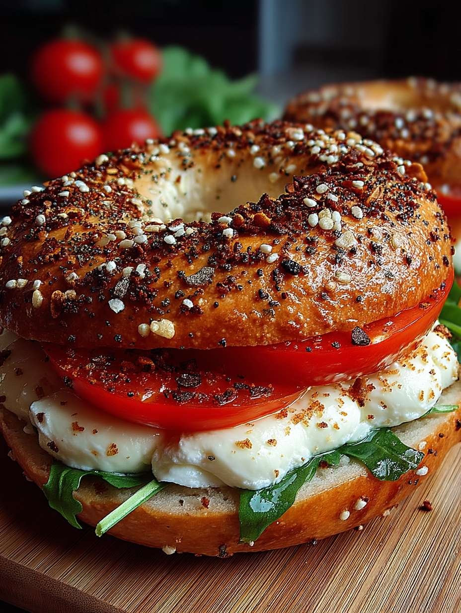 BAGEL MIT TOMATE UND MOZZARELLA ist ein köstliches und vielseitiges Gericht. Mit frischen Zutaten wie saftigen Tomaten und cremigem Mozzarella zauberst du im Handumdrehen etwas Leckeres. Ob als Snack oder leichtes Mittagessen – dieses Rezept ist immer ein Hit! Denke daran, deine Bagel frisch zuzubereiten und kreativ mit verschiedenen Gemüsesorten zu variieren. Genieße jeden Bissen dieser Geschmacksexplosion!