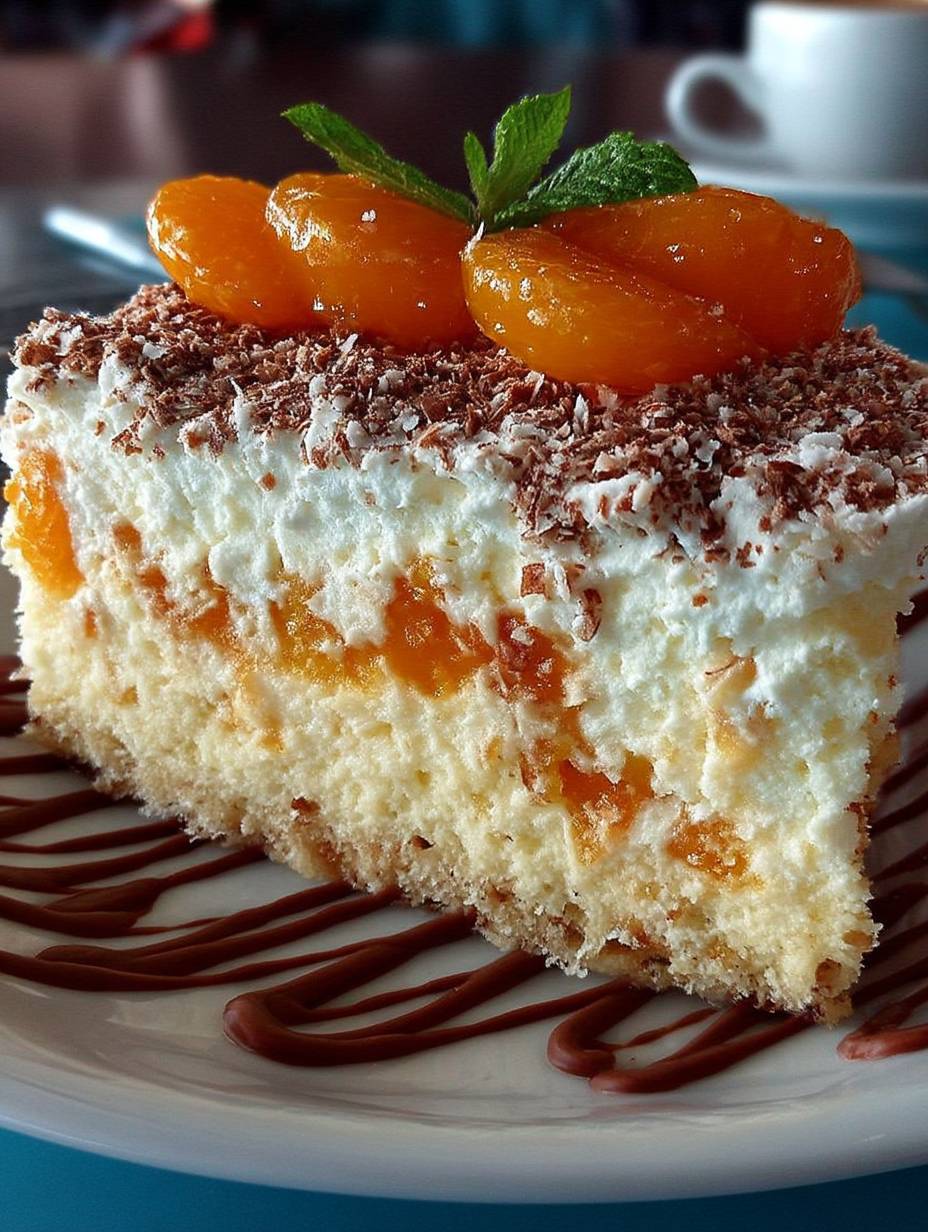 Serviertipp: Garnieren Sie Ihre Blitztorte kurz vor dem Servieren mit frischen Mandarinenfilets und einem Hauch von Minze für extra Frische! Genießen Sie diese himmlische Kreation am besten kalt – perfekt für einen warmen Sommertag oder als krönender Abschluss eines festlichen Essens.