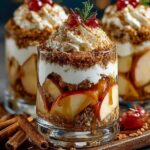 Das Bratapfel Karamell Trifle Rezept zum selber machen ist eine himmlische Kombination aus saftigen Äpfeln, süßem Karamell und cremigem Joghurt – perfekt für jeden Anlass. Dieses Dessert bietet nicht nur ein festliches Geschmackserlebnis, sondern ist auch einfach zuzubereiten. Es ist eine wunderbare Möglichkeit, die Aromen des Herbstes in einem eleganten Dessert zu vereinen. Probieren Sie es aus und lassen Sie sich von jedem Löffel verführen – Ihre Gäste werden begeistert sein!