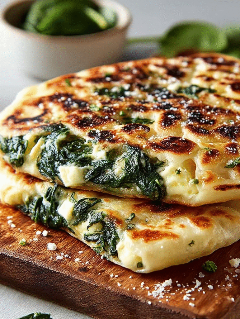 Einfaches Fladenbrot mit Spinat und Käse Rezept