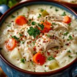 Ein unwiderstehlicher Duft von frisch gekochtem Hühnchen, kombiniert mit der cremigen Konsistenz von zartem Reis und einer aromatischen Brühe, umhüllt die Küche wie eine liebevolle Umarmung. Diese CREMIGE HÜHNER REIS SUPPE ist nicht nur ein Fest für die Sinne, sondern auch ein wahrer Seelenwärmer in kalten Tagen.