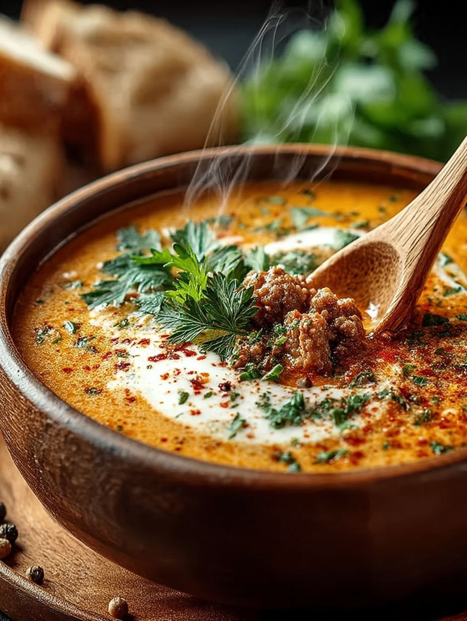 Die CREMIGE KÄSE-HACKFLEISCH-SUPPE ist nicht nur ein Gaumenschmaus, sondern auch eine wahre Wohltat für Körper und Seele. Mit ihrer reichhaltigen Textur und dem herzhaften Geschmack wird sie zum perfekten Wohlfühlgericht an kalten Tagen. Außerdem ist das Rezept einfach nachzuvollziehen und schnell zubereitet, was es ideal für hektische Abende macht. Lassen Sie sich von den Aromen verführen und genießen Sie jede Löffel dieser cremigen Köstlichkeit! Probieren Sie das Rezept jetzt aus und begeistern Sie Ihre Familie oder Freunde mit einem Gericht, das in Erinnerung bleibt.