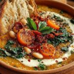 Die Aromen von frisch gekochten weißen Bohnen, aromatischen Kräutern und einer samtigen Brühe vereinen sich in dieser cremigen toskanischen weißen Bohnen-Suppe für Wohlfühlmomente. Sie lädt zum Schlemmen ein und wärmt nicht nur den Körper, sondern auch die Seele – perfekt für die kühleren Tage, an denen man einfach nur auf der Couch kuscheln möchte.
