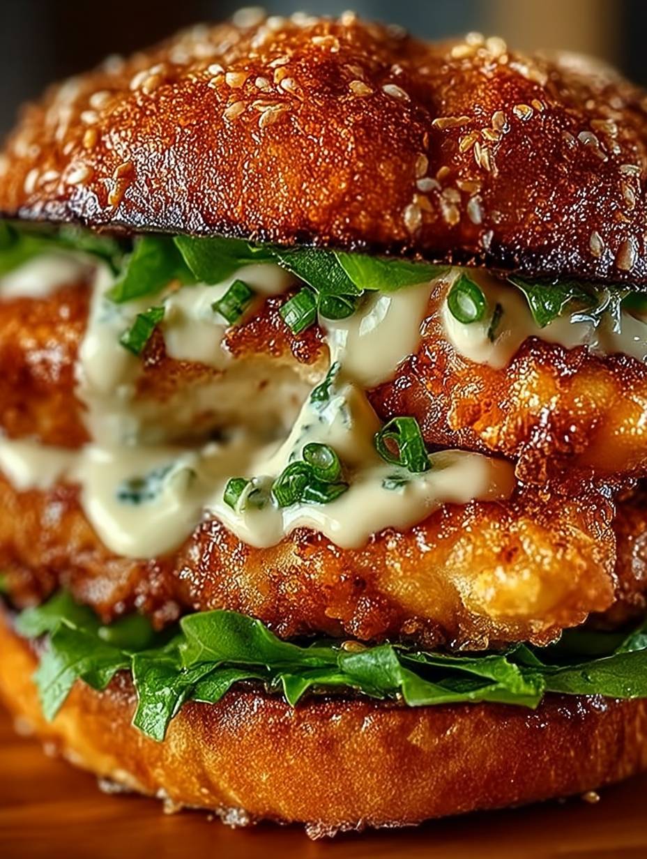 Jetzt sind Sie bereit, Ihr eigenes Crispy Chicken Caesar Sandwich zu genießen! Mit jedem Biss werden die Texturen harmonisch miteinander verschmelzen – crunchy außen und zart innen! Guten Appetit!
