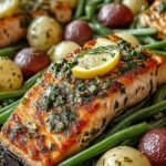 Wenn der Duft von zartem Lachs, knackigen grünen Bohnen und goldbraun gerösteten Kartoffeln durch die Küche zieht, könnten Sie schwören, dass der Himmel auf Erden ist. Die Kombination dieser Aromen und Texturen lässt nicht nur Ihr Herz höher schlagen, sondern auch Ihre Geschmacksknospen einen kleinen Freudentanz aufführen.