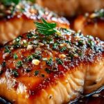 Genießen Sie Ihr einfaches Honig Lachs Rezept aus dem Ofen am besten frisch serviert mit Beilagen wie gedämpftem Gemüse oder einem knackigen Salat!