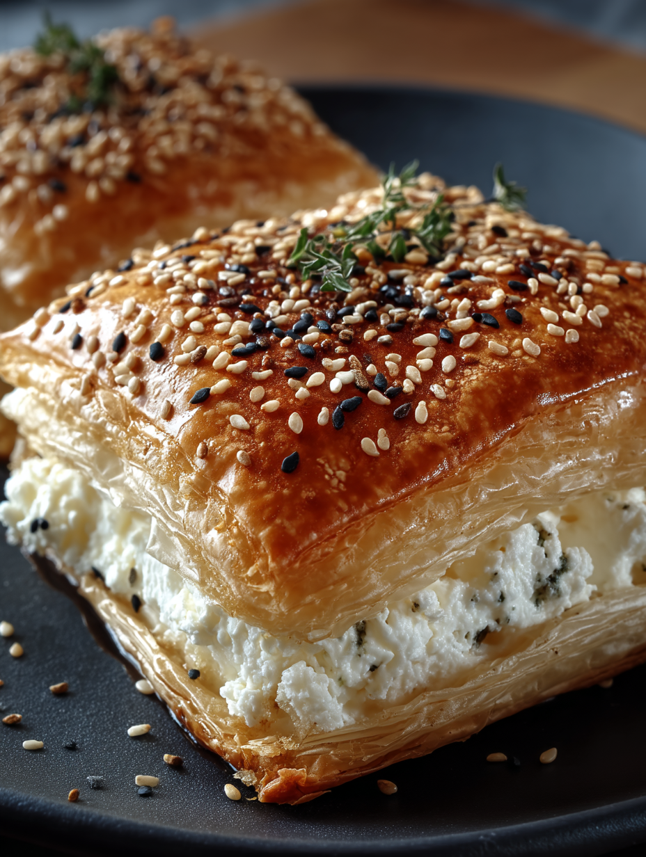 Drittens: Der Geschmack. Der salzige Feta wird im Ofen besonders cremig, der Blätterteig blättert buttrig-knusprig auf, der Sesam gibt nussiges Aroma, und der Thymian bringt mediterrane Frische. Wer mag, kann noch einen Hauch Honig oder Agavendicksaft darüber träufeln – diese süß-salzige Kombi ist einfach unwiderstehlich.