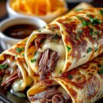 Um die French Dip Tortilla Roll Ups perfekt hinzubekommen, beginnen Sie mit der Füllung. Mischen Sie das Hühnchen oder Rindfleisch gut mit den Gewürzen. Wickeln Sie die Tortillas fest ein und braten Sie sie goldbraun an. Das sorgt für den besten Geschmack und eine tolle Textur.