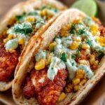 Die Kombination aus knusprigem Hühnchen, süßem, geröstetem Mais und spritziger Jalapeño-Limetten-Sauce sorgt für ein Fest der Aromen in jedem Bissen. Diese FRIED CHICKEN STREET CORN TACOS WITH JALAPEÑO LIME sind nicht nur ein Genuss für den Gaumen, sondern auch ein echter Hingucker auf jedem Tisch!