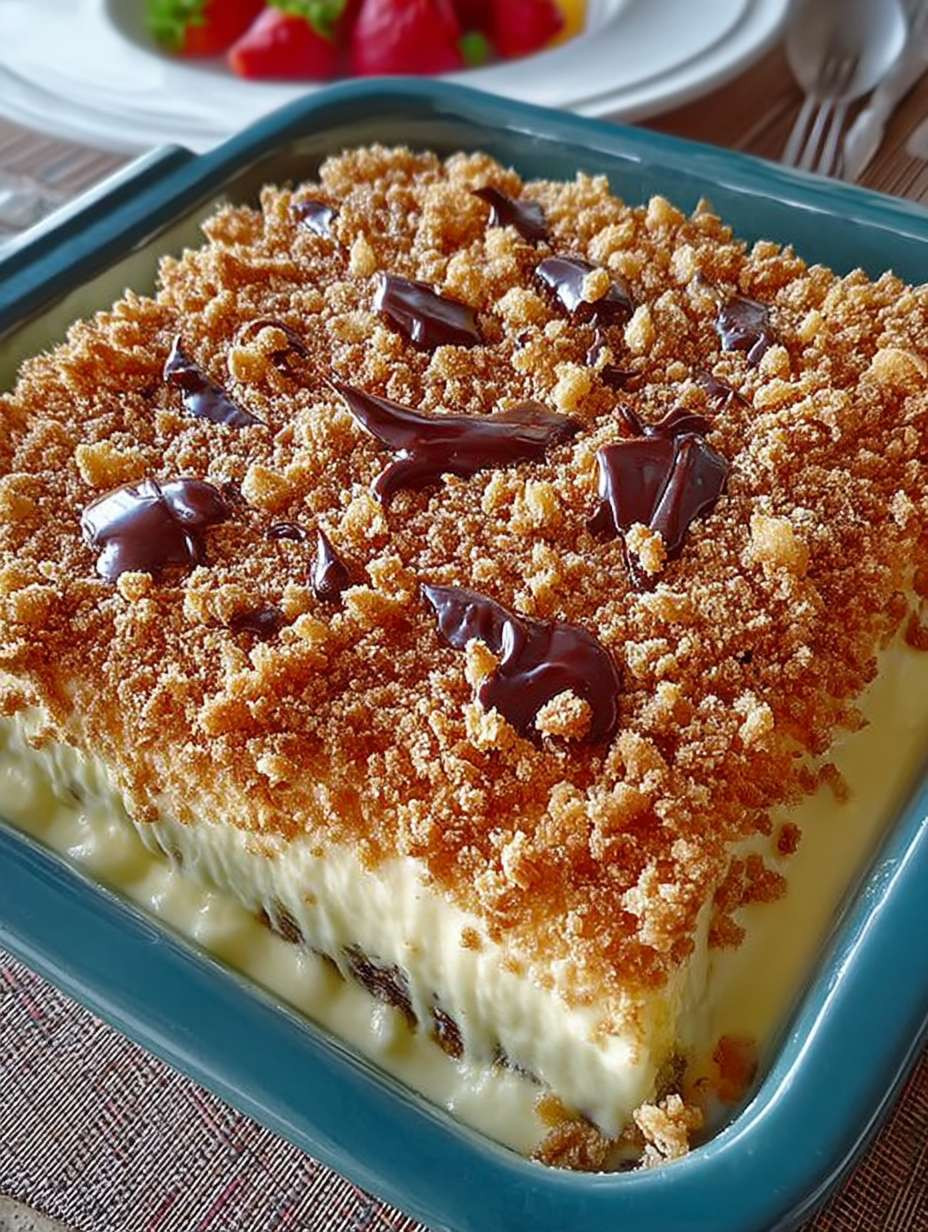 Lagern Sie den Friss dich dumm Kuchen im Kühlschrank, um die frische Textur zu bewahren. Achten Sie darauf, die Kruste und die Füllung getrennt aufzubewahren und erst kurz vor dem Servieren zusammenzufügen. So bleibt der Crunch erhalten!