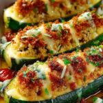 Diese gefüllten Zucchini sind nicht nur ein echter Hingucker auf deinem Tisch, sondern auch ein Fest für den Gaumen! Lass es dir schmecken!