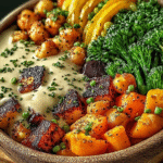 Ich liebe Gerichte, die gesund, bunt und voller Geschmack stecken – und diese gerösteten Gemüse-Kichererbsen-Bowls mit Ahorn-Dijon-Tahini-Dressing gehören definitiv dazu. Als ich das erste Mal eine solche Bowl zubereitet habe, war ich begeistert von der Kombination aus knackigem, geröstetem Gemüse, herzhaften Kichererbsen und dem cremig-nussigen Dressing mit einer feinen Süße durch den Ahornsirup. Das Gericht ist perfekt für alle, die sich ausgewogen ernähren wollen, ohne auf Geschmack verzichten zu müssen.