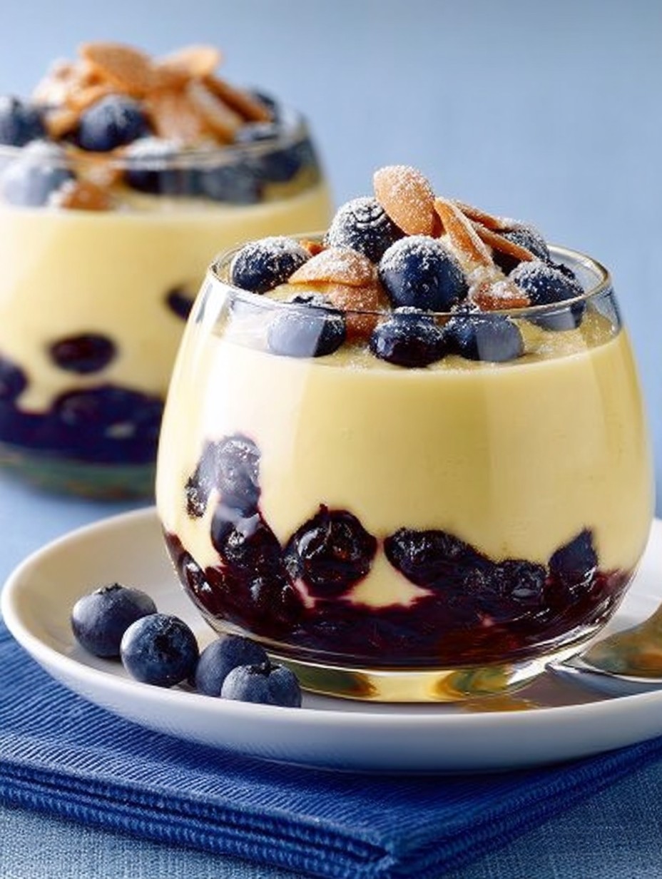 Leckeres heidelbeer-mascarpone-pudding Rezept mit detaillierten Anweisungen und Nährwertangaben.