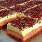 - Schneide den Kuchen in gleichmäßige Stücke.
