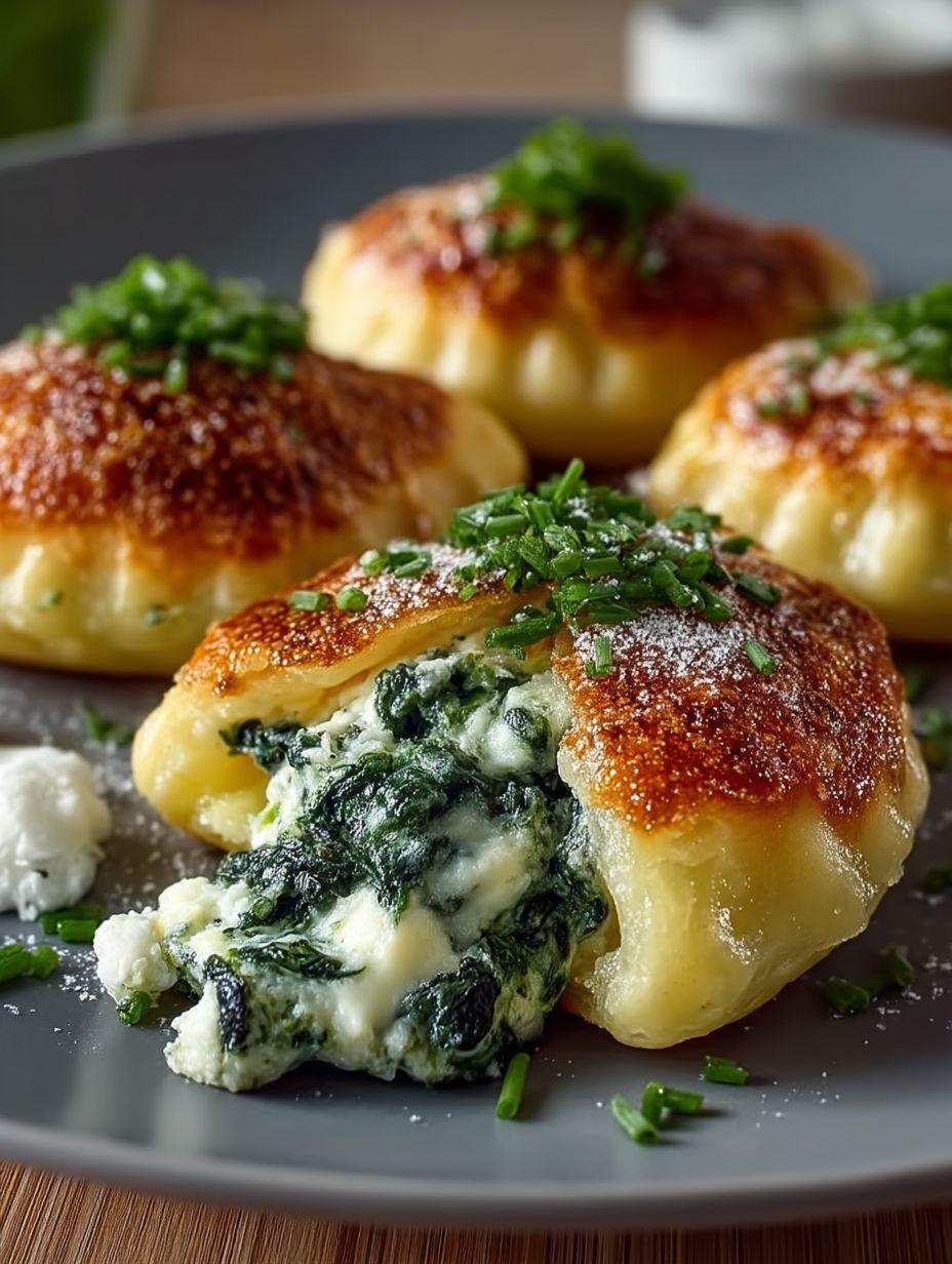 Was dieses Rezept besonders macht: Die Zubereitung ist kinderleicht und benötigt nur wenige Schritte – perfekt für Hobbyköche mit wenig Zeit! Der einzigartige Geschmack von cremigem Frischkäse kombiniert mit frischem Spinat sorgt für ein Gaumenerlebnis, das sowohl herzhaft als auch leicht ist. Optisch sind die Kartoffeltaschen ein echter Hingucker – goldgelb und knusprig. Und das Beste daran? Sie können die Füllung ganz nach Ihrem Geschmack anpassen, egal ob Sie zusätzliche Kräuter oder anderes Gemüse hinzufügen möchten.