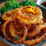 Die krossen Zwiebelringe sind nicht nur ein wahrer Genuss, sondern auch eine perfekte Ergänzung zu vielen Gerichten. Mit ihrem goldenen, knusprigen Teig sind sie der ideale Snack für jede Gelegenheit. Die Kombination aus zarten Zwiebeln und einem würzigen Teig sorgt für ein unvergleichliches Geschmackserlebnis. Ob als Beilage zu Burgern oder einfach zum Knabbern – diese Zwiebelringe werden jeden begeistern. Probieren Sie das Rezept aus und lassen Sie sich von der knusprigen Textur und dem intensiven Aroma verführen. Ihre Gäste werden Ihnen dafür danken!