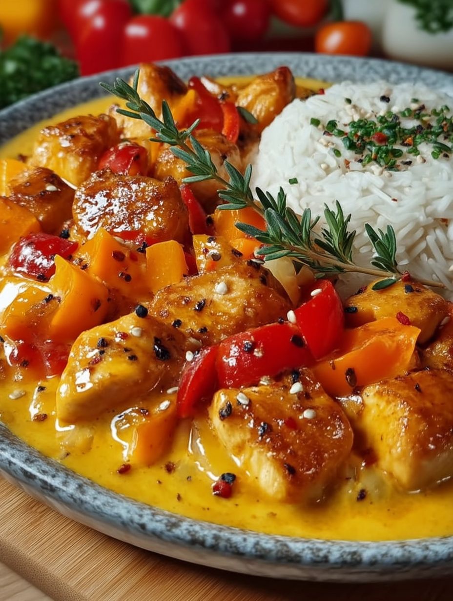 Dieses Rezept ist nicht nur einfach zuzubereiten; es ist auch ein Fest für die Sinne! Die Kombination aus zartem Hähnchen und cremigem Kürbis sorgt für ein einzigartiges Geschmacksprofil, das selbst den skeptischsten Esser überzeugt. Optisch ist es ein wahrer Hingucker mit seinen leuchtenden Farben, die auf jedem Teller strahlen. Und das Beste? Sie können die Zutaten ganz nach Ihrem Geschmack anpassen – sei es durch zusätzliche Gewürze oder Gemüse Ihrer Wahl!