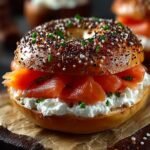 Leckerer Lachs-Bagel mit Frischkäse-Genuss ist nicht nur ein kulinarisches Erlebnis, sondern auch ein Fest für die Sinne. Stellen Sie sich vor, wie der frisch gebackene Bagel mit seinem goldbraunen Äußeren und dem zarten, warmen Inneren auf Ihrem Teller liegt. Der verführerische Duft von geräuchertem Lachs mischt sich mit dem cremigen Frischkäse und dem spritzigen Zitronensaft – einfach himmlisch!