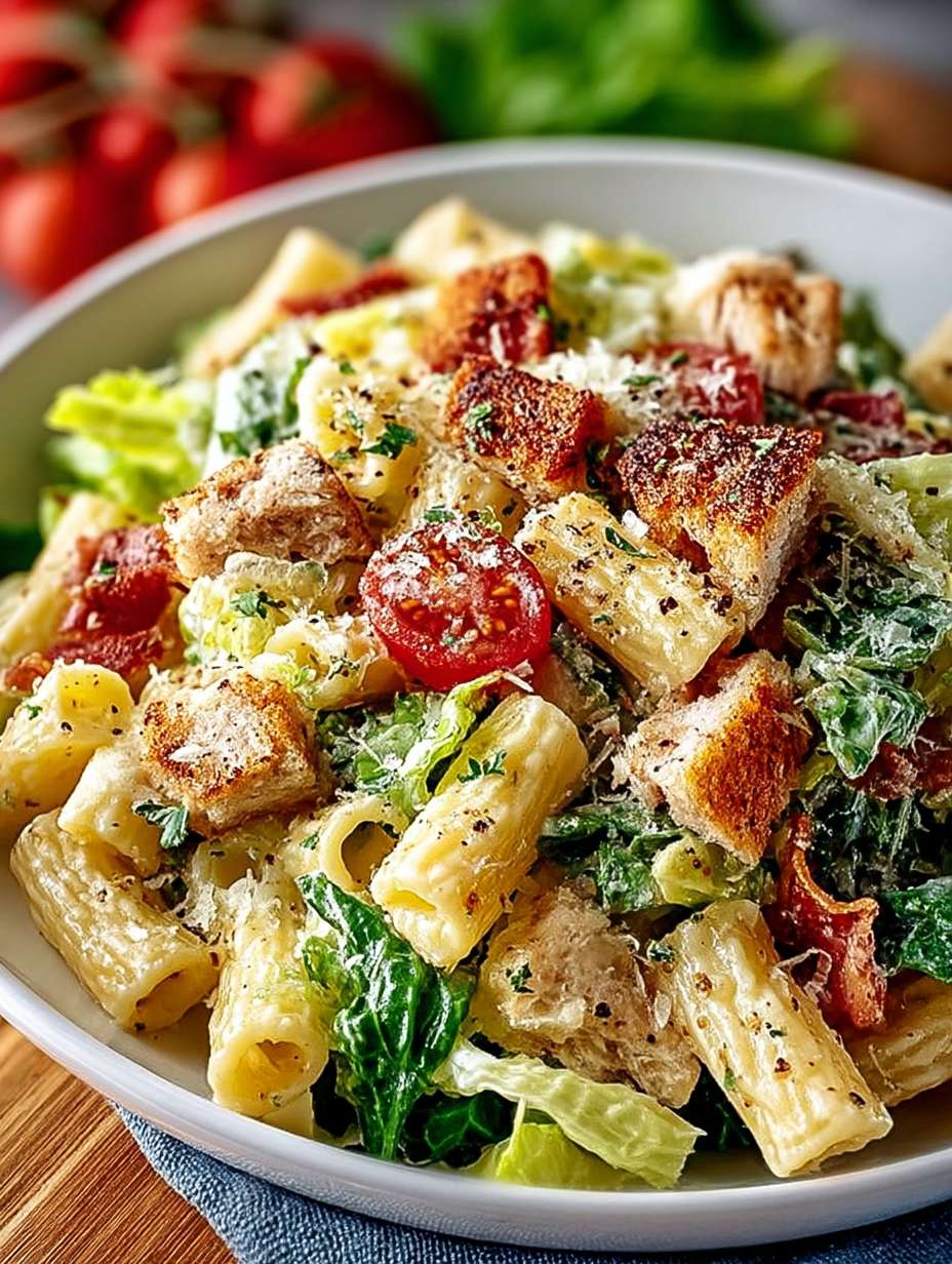 Ein bisschen Kreativität schadet nie! Tausche das Hühnchen gegen zarte Putenbrust oder verwende statt Croutons knusprige Kichererbsen. Das verleiht dem *leckeren Caesar Nudelsalat Rezept für dich* eine ganz neue Note!