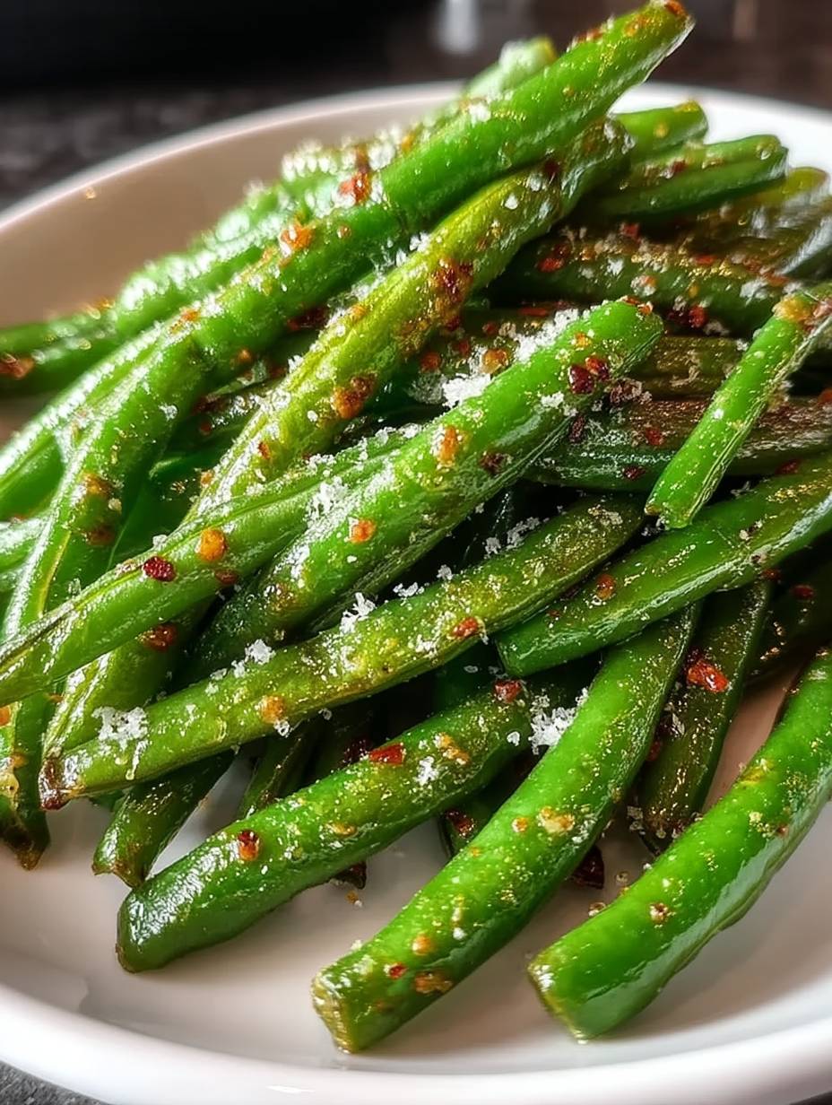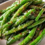 - Servieren Sie die knusprigen grünen Bohnen warm.