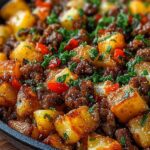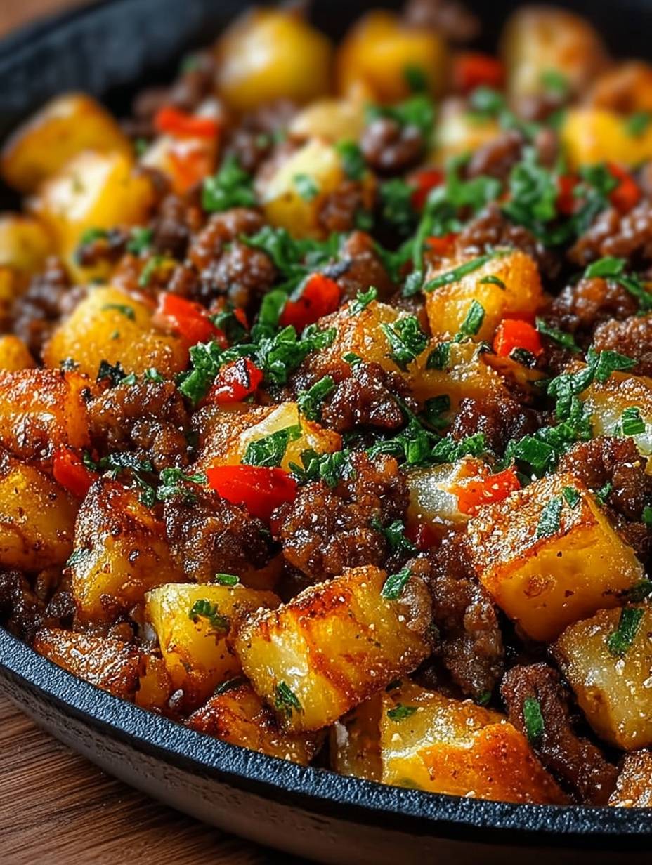 Die Aromen der mexikanischen Küche entfalten sich in dieser köstlichen Hackfleisch-Pfanne mit Kartoffeln, die sowohl pikant als auch herzhaft ist. Saftiges Rinderhackfleisch trifft auf zarte Kartoffelwürfel und wird von einer würzigen Gewürzmischung umhüllt, die selbst den mildesten Gaumen verführt.