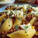 Ein köstliches Gericht, das den Gaumen kitzelt und die Sinne verführt: MUSCHELNUDELN MIT RINDERHACK. Die zarten Muschelnudeln umhüllen eine würzige Füllung aus saftigem Rinderhack, während der Duft von Knoblauch und frischen Kräutern in der Luft liegt und einem das Wasser im Mund zusammenlaufen lässt.