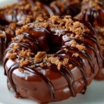 - Tauche die abgekühlten Ringe zur Hälfte in die geschmolzene Schokolade.