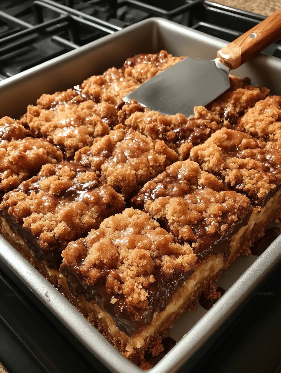 - Verkrümel den Streuselteig über die Nutella-Schicht.