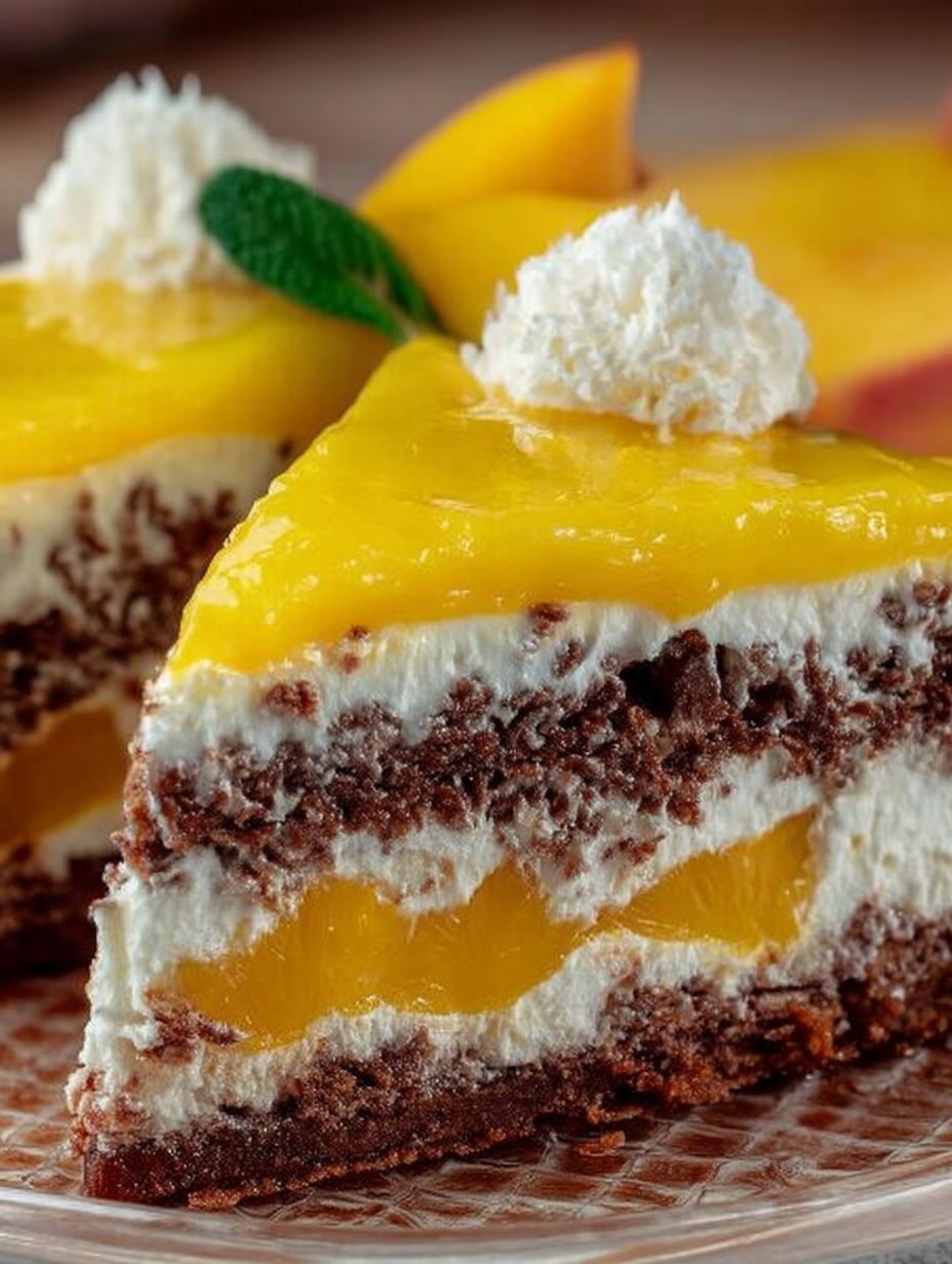 Serviertipp: Garnieren Sie die Torte vor dem Servieren mit frischen Pfirsichscheiben und Minzblättern für einen zusätzlichen Frischekick!