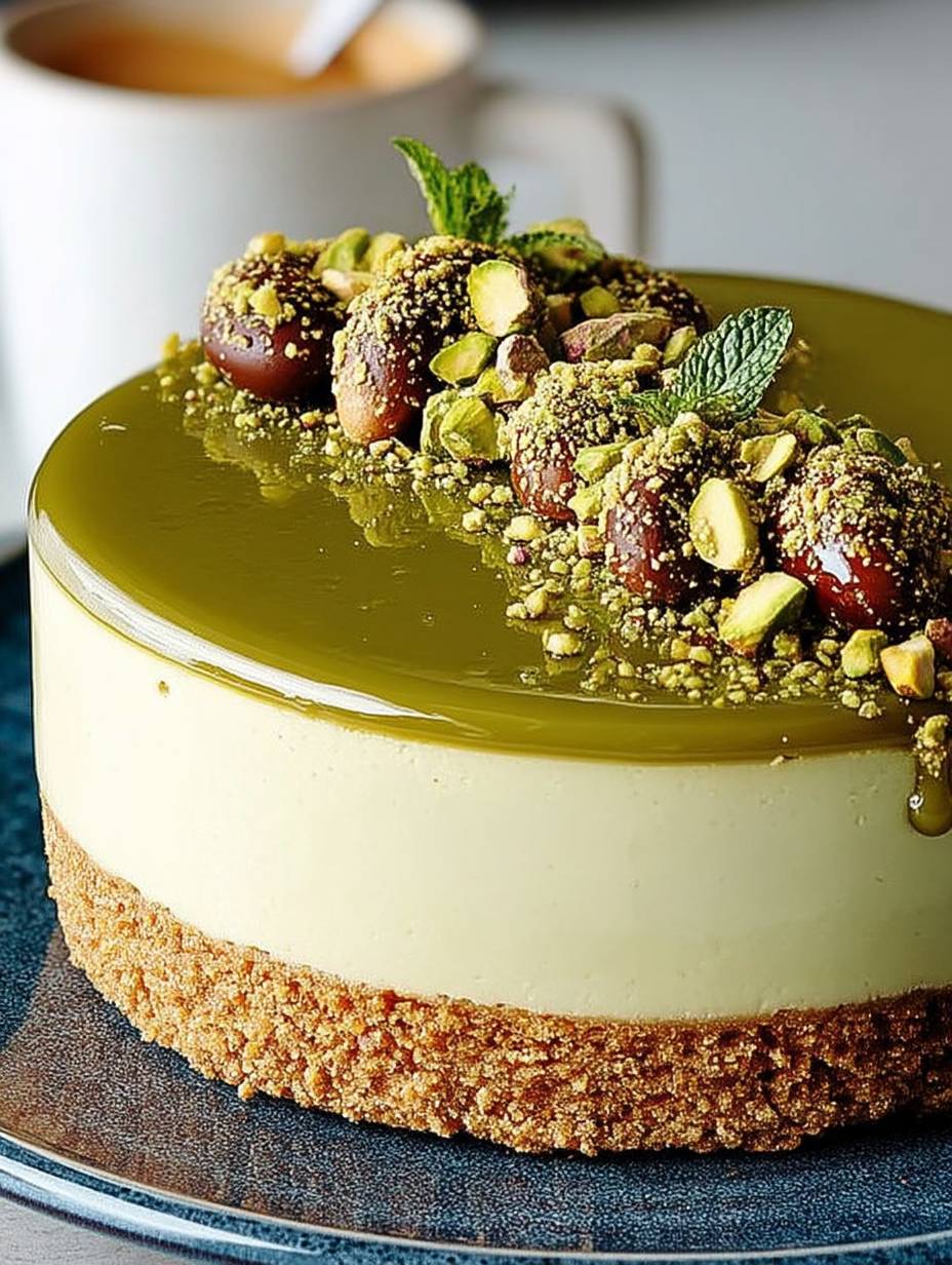 Stell dir vor, du beißt in ein Stück cremigen Käsekuchen, das den unverwechselbaren, nussigen Geschmack von Pistazien entfaltet. Die sanfte Süße schmilzt auf deiner Zunge und lässt dich für einen Moment alle Sorgen vergessen. Jeder Bissen ist wie eine Einladung zu einem sommerlichen Picknick im Park – die Sonne scheint, die Vögel zwitschern und alles fühlt sich einfach gut an.