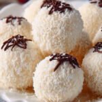 - Jede Kugel in den restlichen Kokosraspeln wälzen, bis sie vollständig bedeckt ist.
