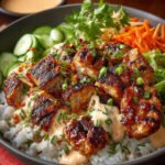 Was dieses Rezept besonders macht: Die Saftige Würzige Hähnchen Bowl mit cremiger Soße ist nicht nur einfach zuzubereiten, sondern begeistert auch durch ihr einzigartiges Geschmacksprofil. Die Kombination aus würzigem Hähnchen und der samtigen Soße sorgt für ein Geschmackserlebnis, das jeden Bissen zum Genuss macht. Ästhetisch ansprechend angerichtet wird sie zum Hingucker auf jedem Tisch und kann leicht nach Ihrem persönlichen Geschmack angepasst werden – sei es durch zusätzliche Kräuter oder saisonales Gemüse.