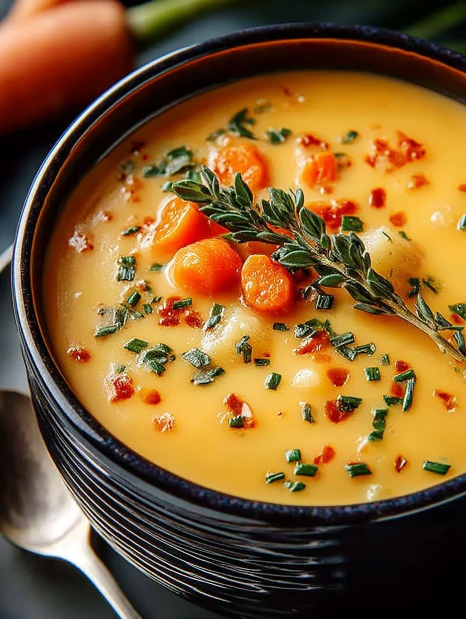 Die Samtige Möhren Kartoffel Suppe überzeugt durch ihre einfache Zubereitung – selbst Küchenanfänger werden hier zum Meisterkoch. Ihr einzigartiges Geschmacksprofil verbindet die Süße der Möhren mit der Cremigkeit der Kartoffeln und wird durch frische Kräuter abgerundet. Optisch ist die leuchtende Farbe der Suppe ein echter Hingucker auf jedem Tisch und lädt dazu ein, den Löffel zu schwingen. Zudem lässt sich das Rezept ganz nach deinem Geschmack anpassen – ob mit Gewürzen oder zusätzlichen Gemüsesorten, deiner Kreativität sind keine Grenzen gesetzt!