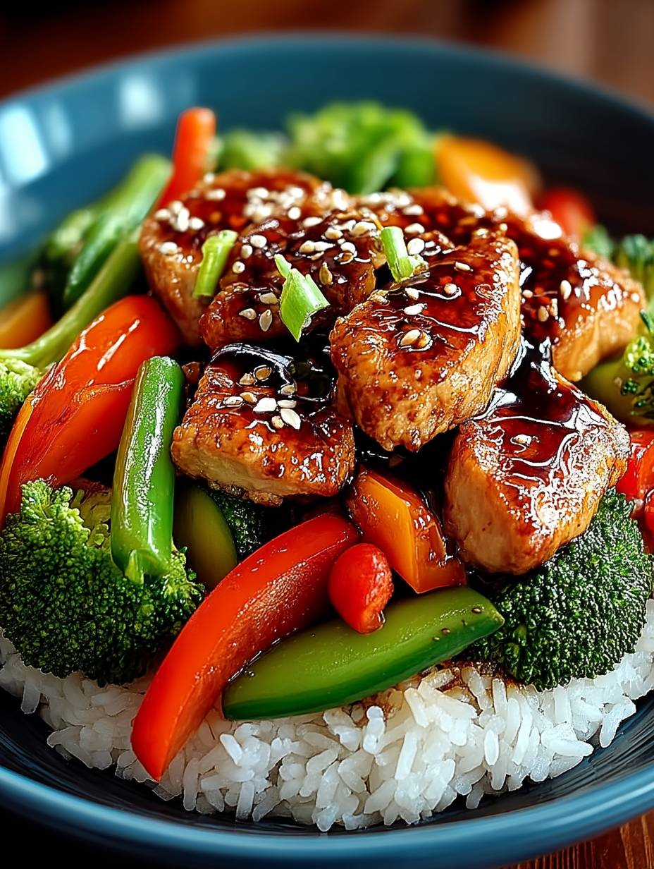 Die köstlichen Aromen des Teriyaki-Hähnchens mit Gemüse umhüllen Ihre Sinne wie eine warme Umarmung. Stellen Sie sich vor, wie das zarte Hähnchen in einer süß-würzigen Marinade schimmert und knackiges Gemüse die perfekte Farbe auf den Teller bringt – ein Fest für die Augen und den Gaumen.