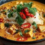 Sie werden diese Thailändische Kokos-Curry-Nudelsuppe lieben! Die Zubereitung könnte einfacher nicht sein: Mit nur wenigen Zutaten und schrittweisen Anleitungen sind Sie im Handumdrehen fertig. Das einzigartige Geschmacksprofil kombiniert die Süße der Kokosmilch mit der Würze des Currys und verleiht jedem Löffel ein aufregendes Aroma. Diese Suppe sieht nicht nur atemberaubend aus – die leuchtenden Farben machen sie zum perfekten Hingucker auf jeder Dinner-Party! Und das Beste daran? Sie können sie nach Ihrem Geschmack anpassen – fügen Sie Ihr Lieblingsgemüse oder Protein hinzu, um dieses Gericht ganz nach Ihrem Gusto zu gestalten.