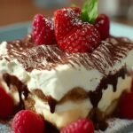 Stellen Sie sich vor, Sie beißen in eine sündhaft cremige Schicht des besten Tiramisu, das je gemacht wurde. Der zarte Übergang zwischen der leichten Mascarpone-Creme und dem aromatischen Kaffee ist einfach himmlisch. Die Texturen verschmelzen, während die Kakaonoten auf Ihrer Zunge tanzen – einfach unwiderstehlich!