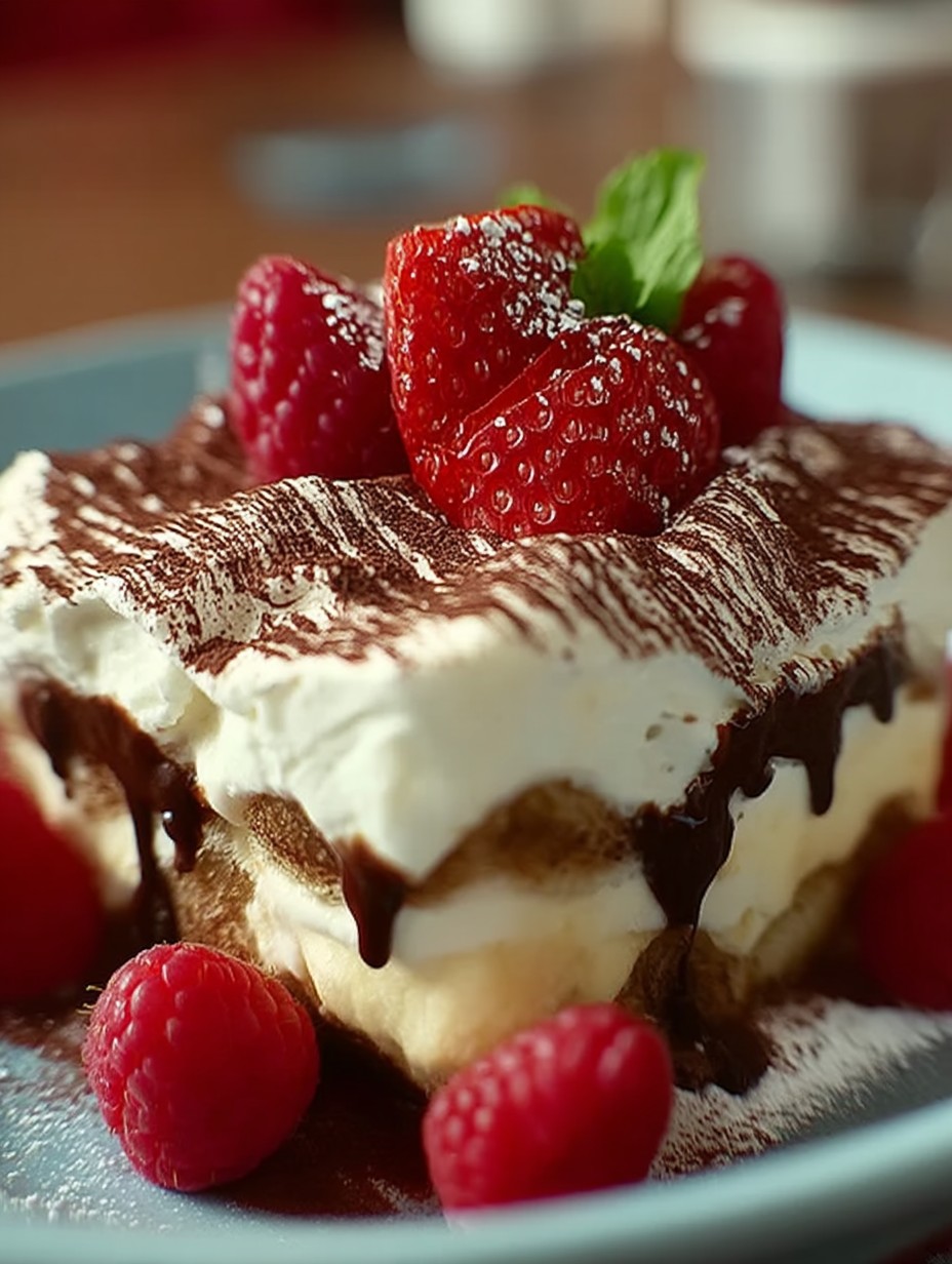 Stellen Sie sich vor, Sie beißen in eine sündhaft cremige Schicht des besten Tiramisu, das je gemacht wurde. Der zarte Übergang zwischen der leichten Mascarpone-Creme und dem aromatischen Kaffee ist einfach himmlisch. Die Texturen verschmelzen, während die Kakaonoten auf Ihrer Zunge tanzen – einfach unwiderstehlich!