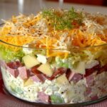 Leckeres über-nacht-salat zum vorbereiten Rezept mit detaillierten Anweisungen und Nährwertangaben.