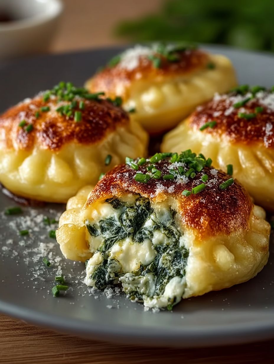 Und voilà! Deine vegetarischen Kartoffeltaschen mit Frischkäsefüllung sind bereit zum Genießen! Perfekt als Snack oder Hauptgericht – einfach unwiderstehlich!