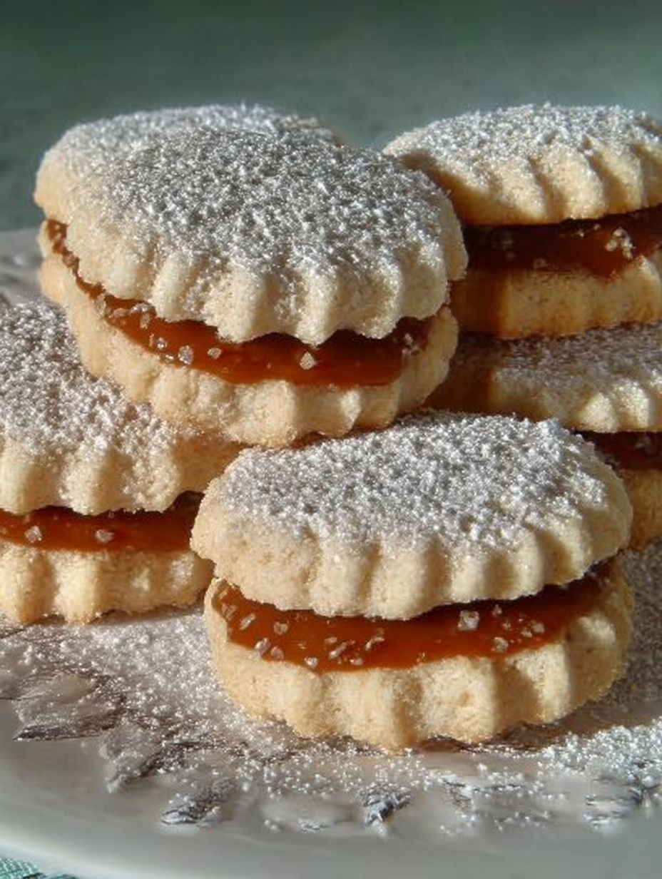 Um die zarte Textur Ihrer Kekse zu bewahren, lagern Sie sie in einem luftdichten Behälter. Achten Sie darauf, dass die Karamellfüllung nicht austrocknet – fügen Sie ein Stück Brot für zusätzliche Feuchtigkeit hinzu!